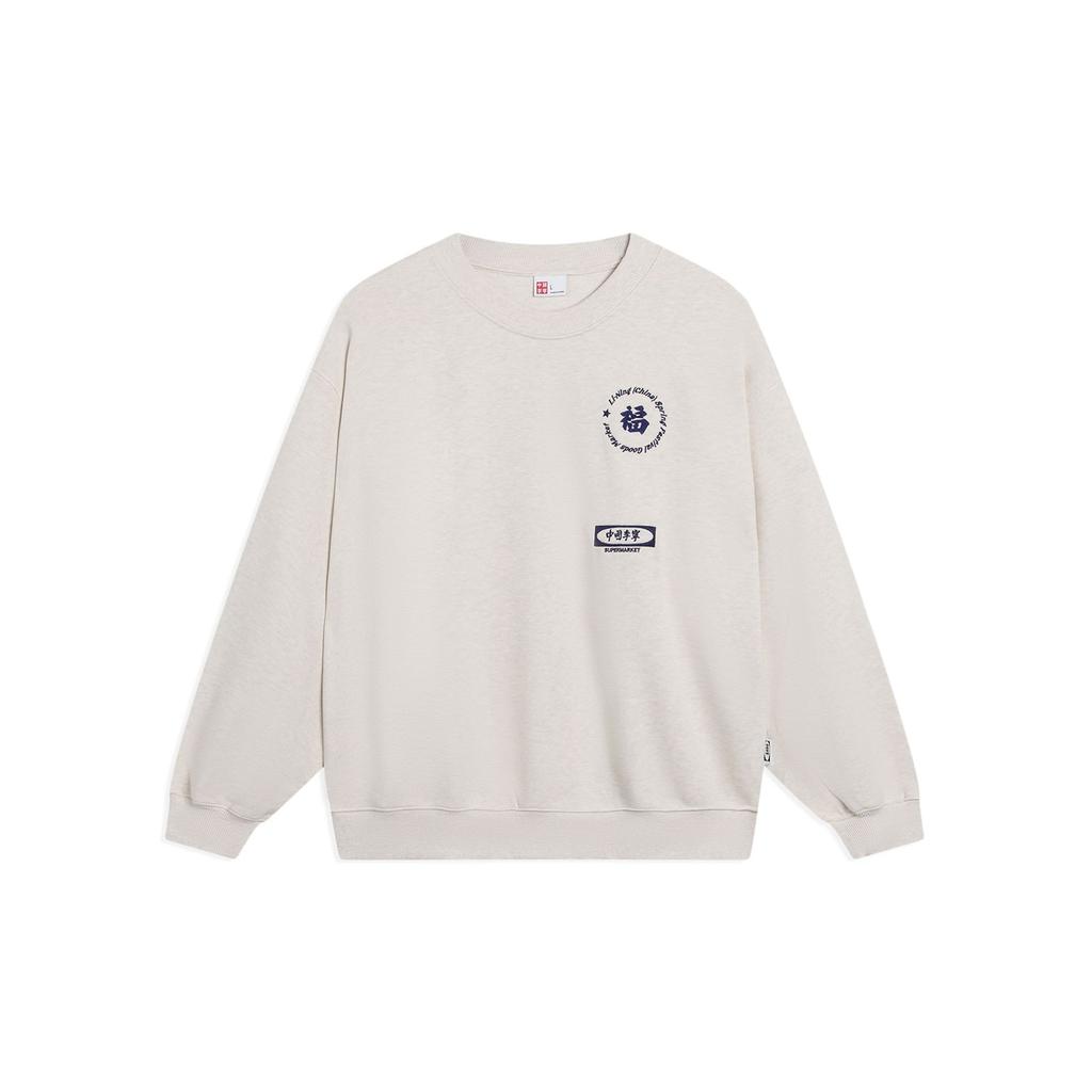 Li-Ning Daily Progress Solid Color Embroidered Pullover Crew Neck Sweatshirt Unisex Tops Slate-Gray AWDT235-1