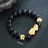 Sand Gold Pixiu Bracelet for Men and Women Chinese Style Black Stone Wine Red Imitation Gold Pixiu Bracelet Beads Jewelry Accessories