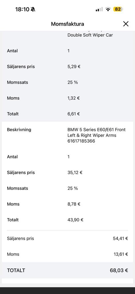 BMW 5 Series E60/E61 Front Left & Right Wiper Arms 61617185366