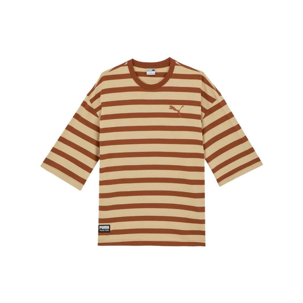Puma Casual Striped Round Neck Loose Fit Printed Short Sleeve T-Shirt Unisex Tops Pebble-Pattern 539530-20