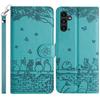 For Samsung Galaxy S23 FE Case with Wrist Strap Leather Phone Cover Wall Cats Pattern