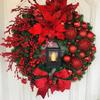 45cm Christmas Decoration Golden Wreath With Lamp For Front Door Red Ball Flower Garland Xmas Ornament Window Wall Hanging Decor