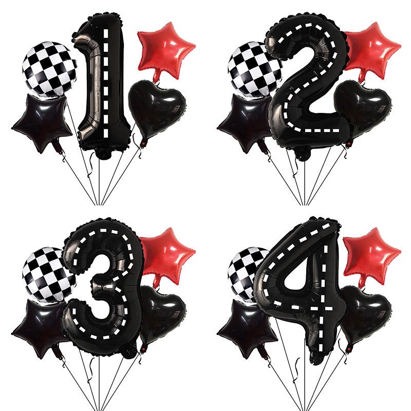 Racing Theme Balloon Bundle Black Textured Aluminum Film Digital Birthday Set Venue Background Arrangement
