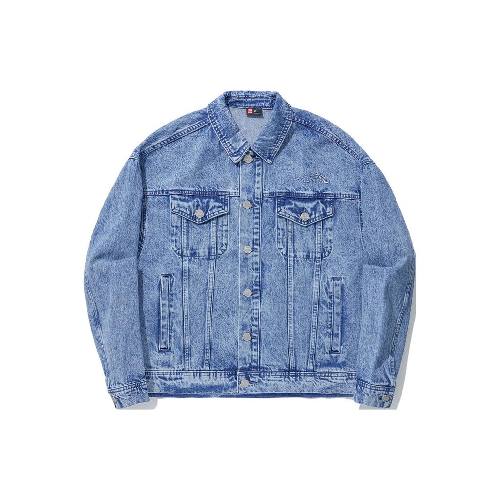 Li Ning Skateboard Series Solid Color Loose Wash Denim Jacket Men Jacket Light-Blue AJDU105-1