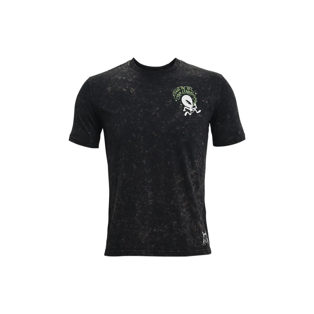 Under Armour Cartoon Letter Tie-Dye Crew Neck Running T-Shirt Men Tops Black 1361481-001