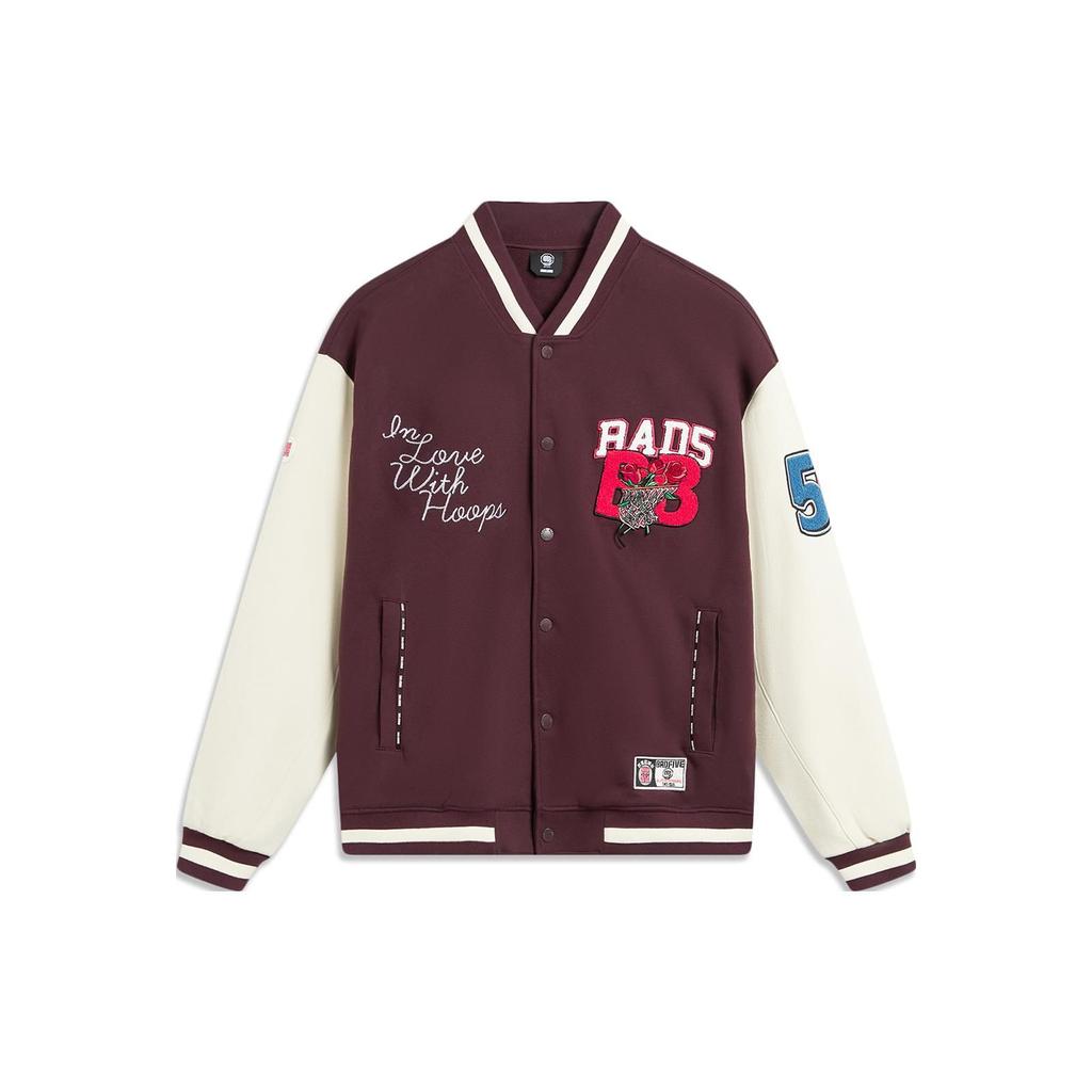 Li Ning Basketball Series Anti-Five American Retro Trend Long Sleeve Sports Baseball Jacket Men Jackets Deep-Red AFDT881-2