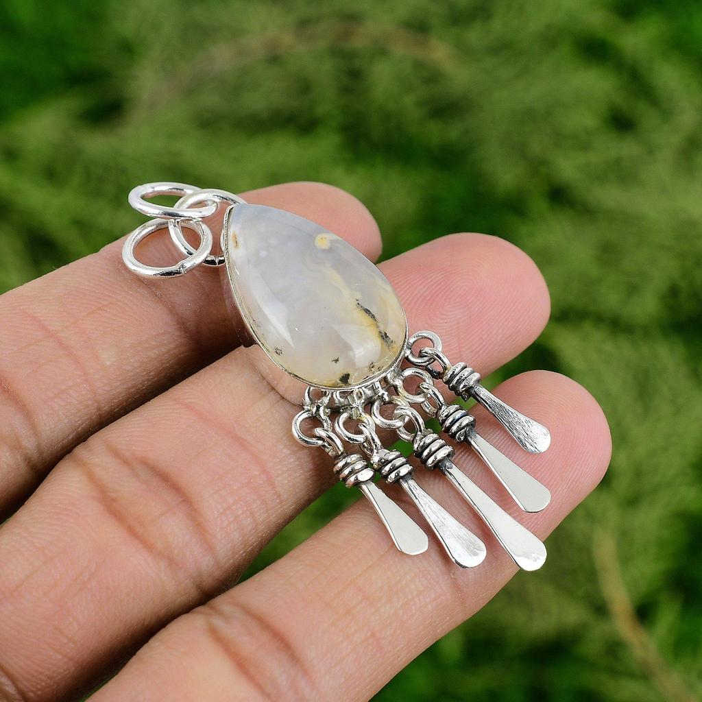 Daughters Day Sale 925 Sterling Silver Plume Agate Stone Engagement Wife Pendant