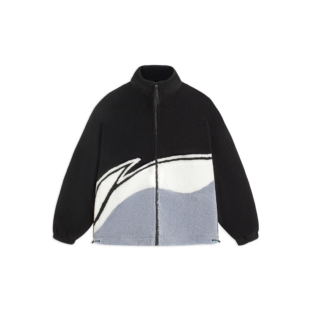 Li Ning Color Block Logo Casual Lamb Fleece Long Sleeve Cotton Jacket Unisex Jacket Black AJMS107-1