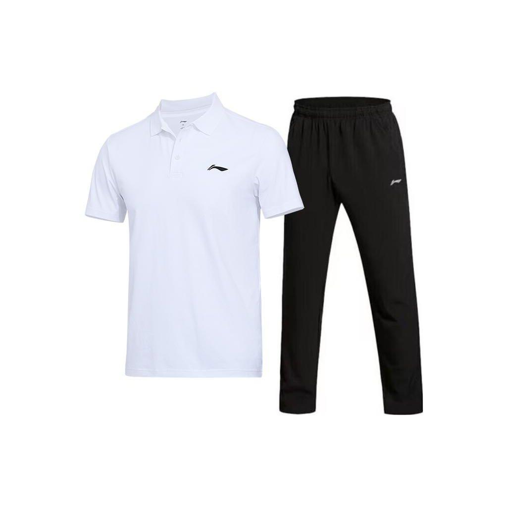 Li-Ning Plain Logo Pullover Short Sleeve Polo Shirt And Cuffed Casual Sports Suit Men Suits AKLT647-1+APLT181-2