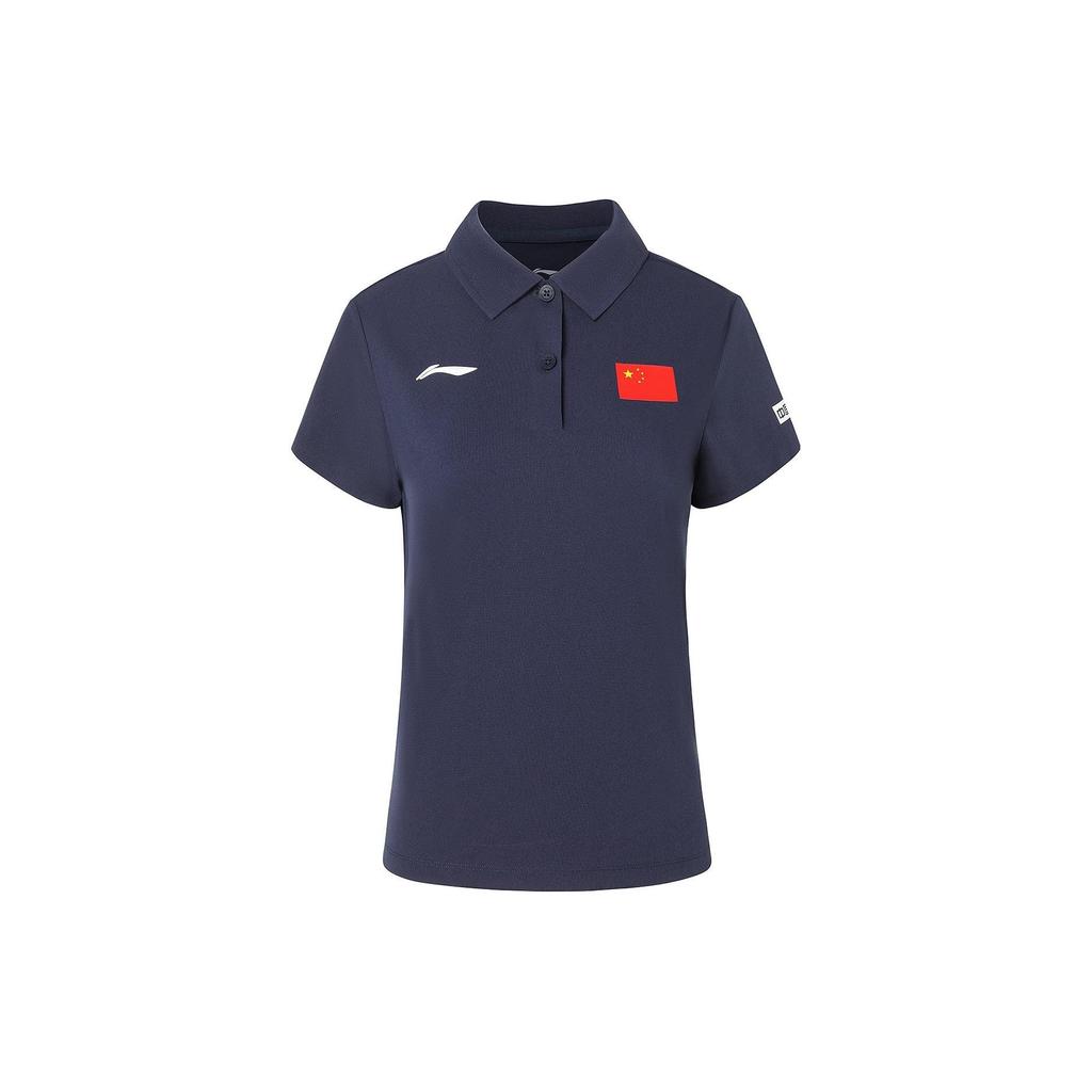 Li Ning National Flag Letter Print Short Sleeve Polo Shirt Women Tops Blue APLS230-1