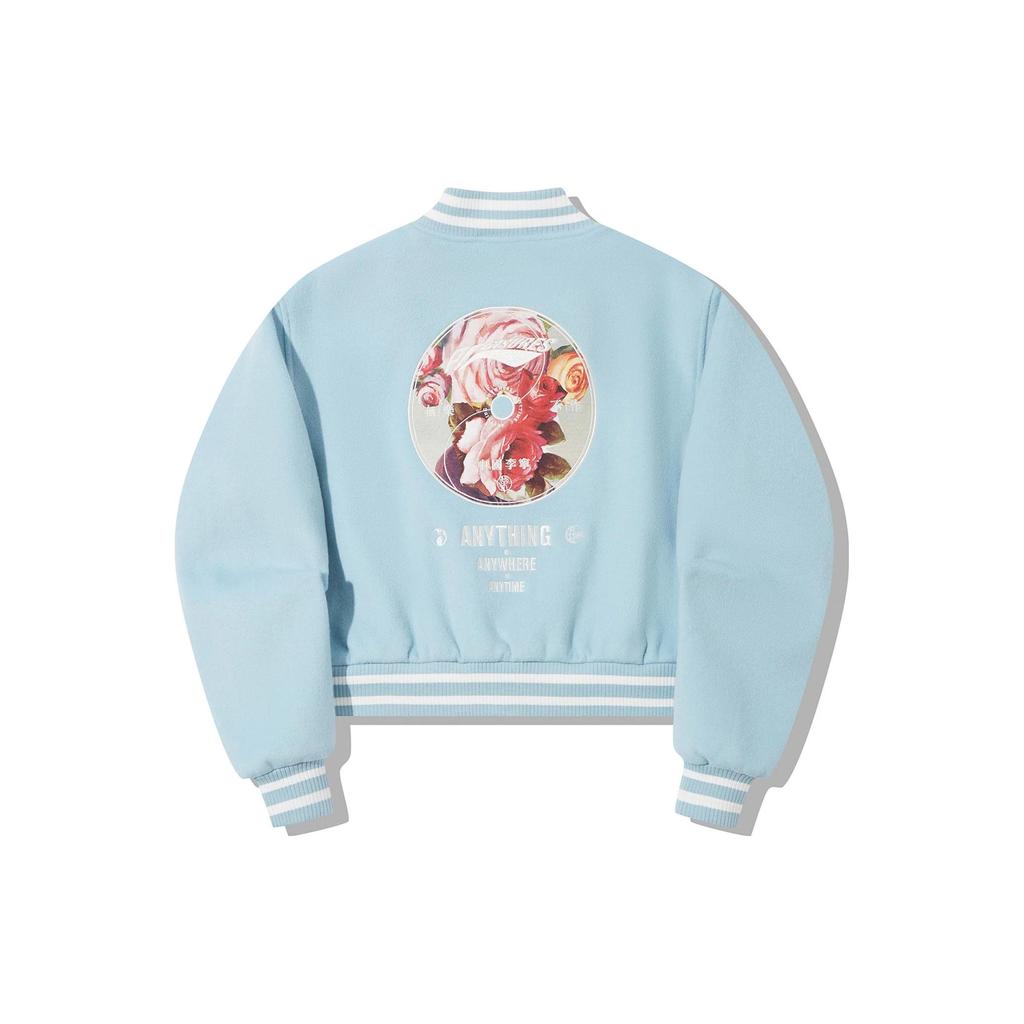 Li Ning X Pleasures Collaboration Series Floral Gray Casual Baseball Jacket Women Jackets Forget-Me-Not-Blue AJDT754-1