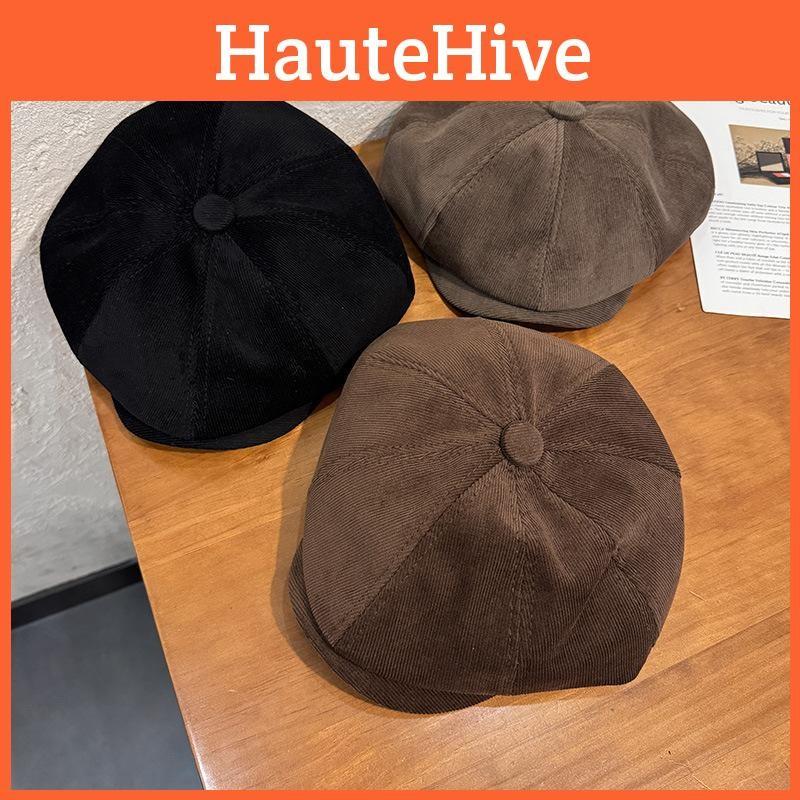 Solid Corduroy Color Beret Cap With Sun Protection Warmth For Adult Fashion Gift