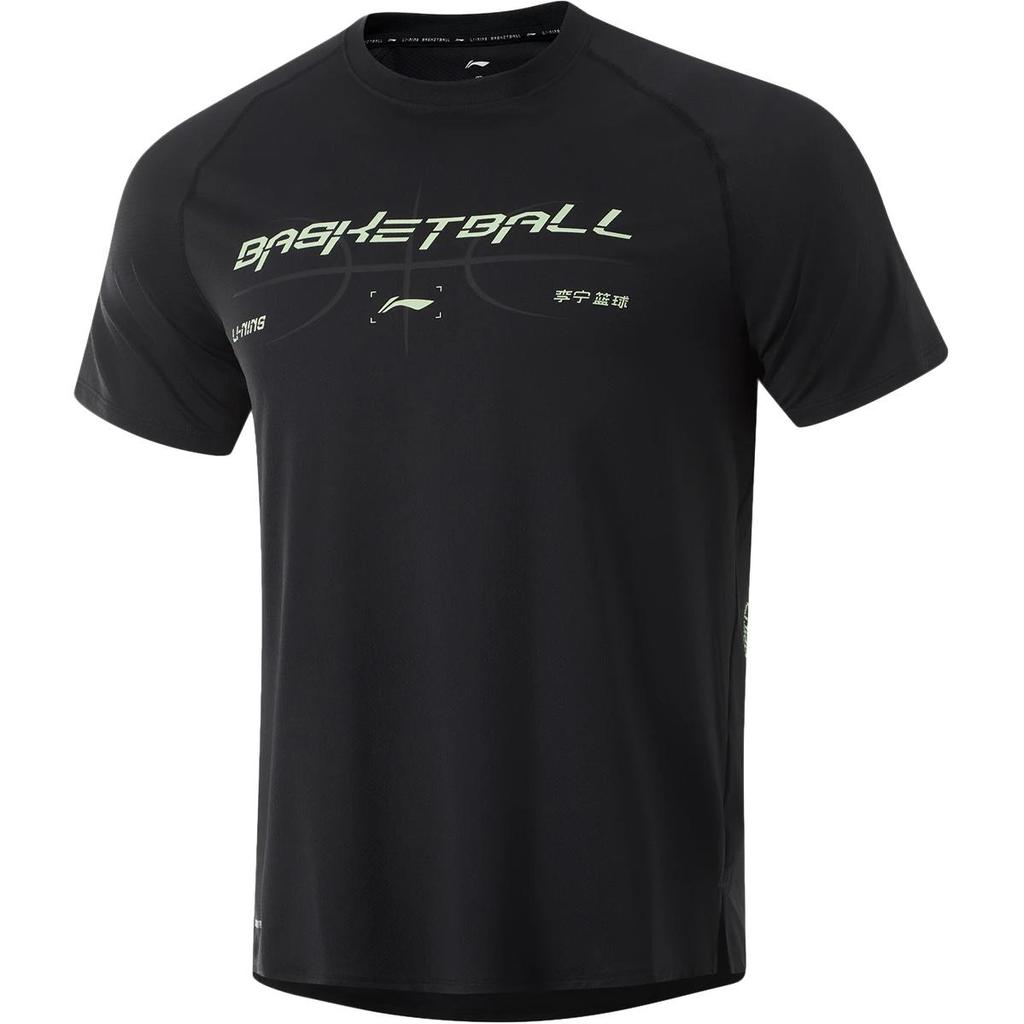 Li-Ning Professional Basketball Series Letter Round Neck Comfortable Breathable Versatile Short Sleeve T-Shirt Men Tops Black ATSU083-1