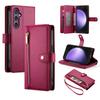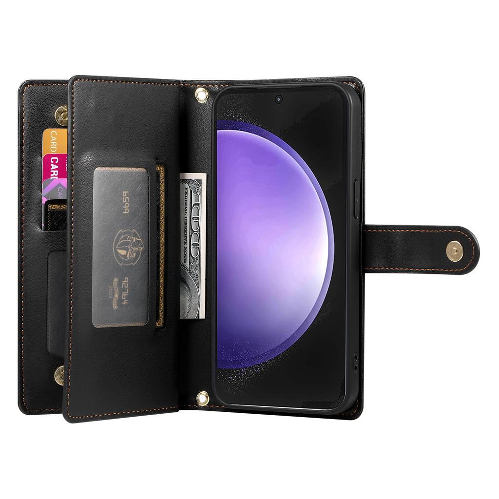DF-011 For Samsung Galaxy S23 FE Case PU Leather Zipper Wallet Phone Cover with Straps