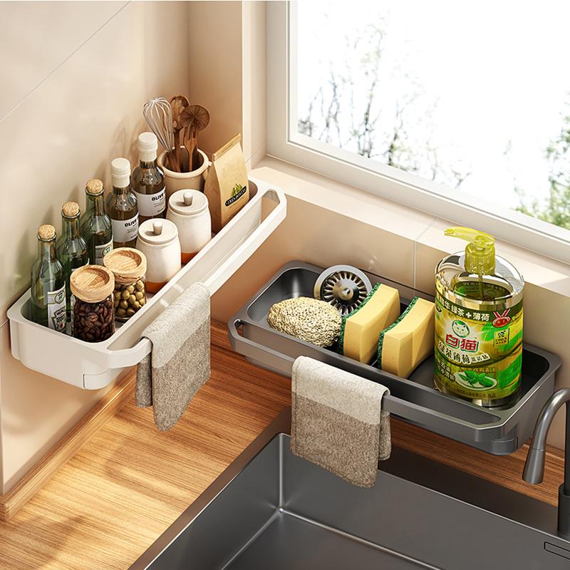 1pcs Kitchen Sink Storage Rack Drain Rack with Towel Rack Wall Mounted To Store Sponge Soap Cleaning Tools Sink Accessories