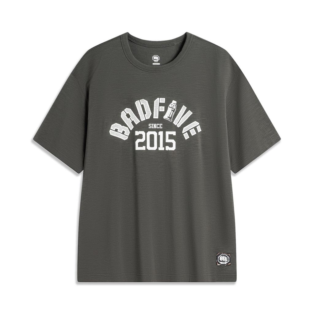 Li Ning Badfive Basketball Series Letter Number Crew Neck Comfortable Pullover Loose Short Sleeve T-Shirt Men Tops Slate-Gray AHSU147-6
