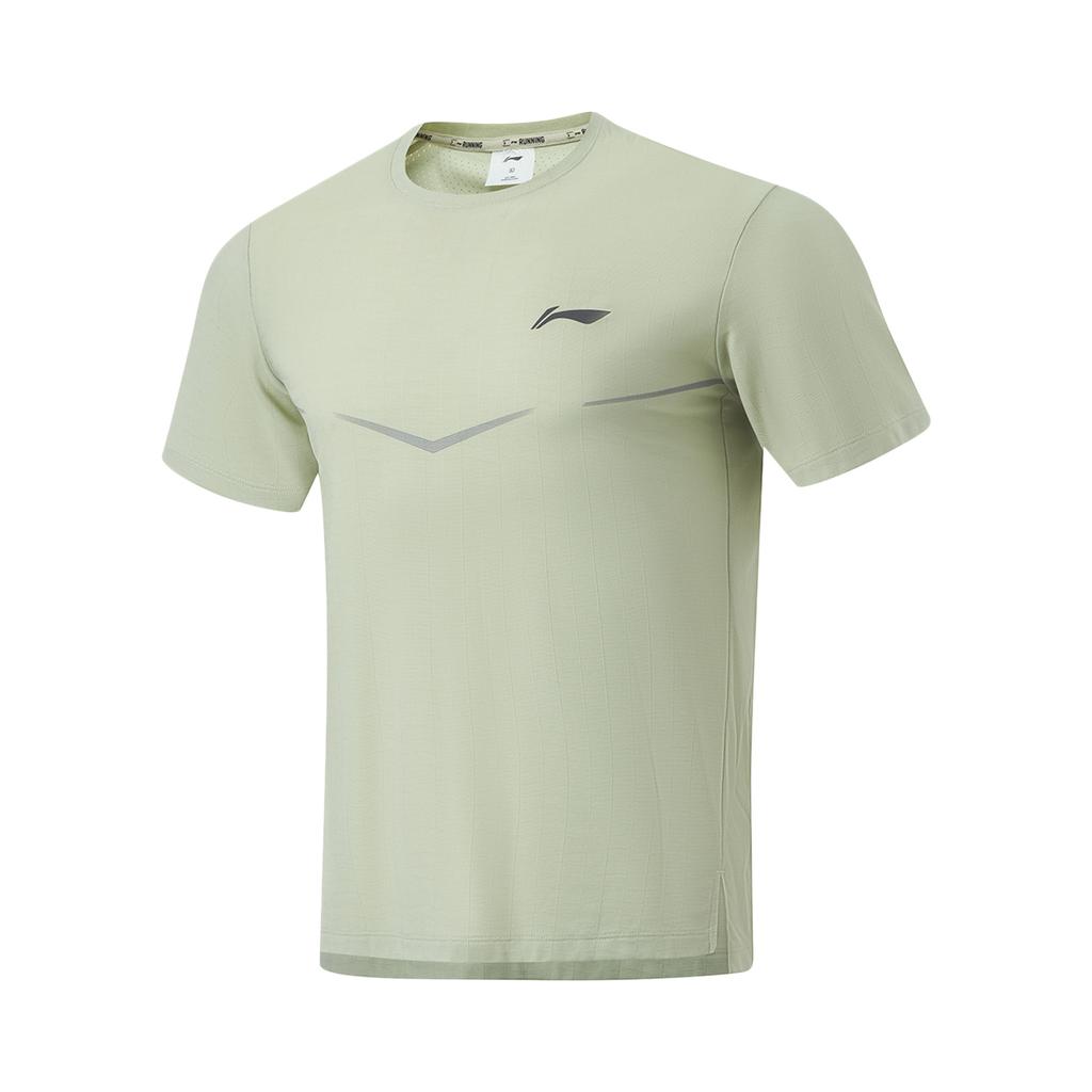 Li Ning Running Series Solid Color Logo Quick-Dry Breathable Round Neck Short Sleeve T-Shirt Men Tops Desert-Green ATSU511-2