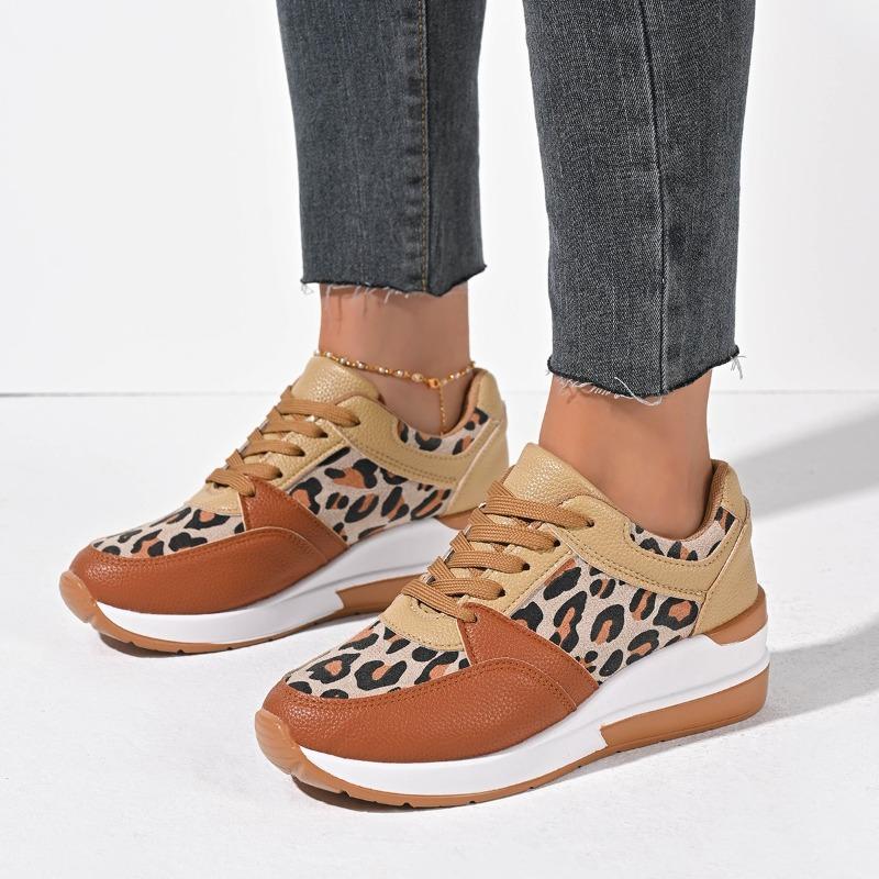 Leopard Print Slope Heel Platform Single Shoes Women's Autumn New Color Matching Casual Trendy Comfortable Sports Shoes
