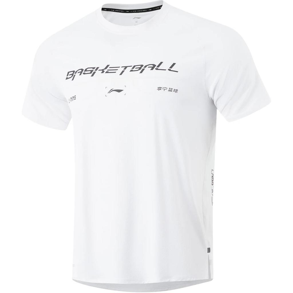 Li Ning Basketball Series Letter Round Neck Comfortable Breathable Versatile Short Sleeve T-Shirt Men T-Shirts Standard-White ATSU083-2