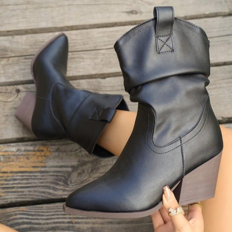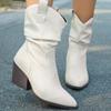 Winter New High-heeled Pleated Piled Boots Comfortable Pointed One-pedal Thin Retro Fashion Medium Tube Knight Boots Women