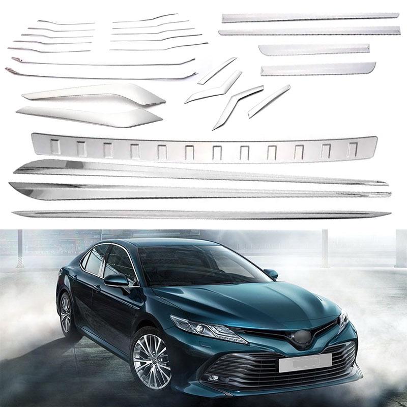 Fits 2017-2021 Toyota Camry XV70: Rear Guard Plate, Door Edge Strip, Grille, and Other Exterior Parts.
