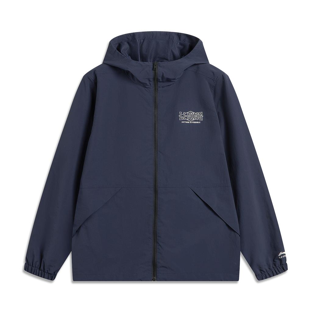Li Ning Sports Lifestyle Series High Street American Vintage Cardigan Long Sleeve Windbreaker Loose Coat Unisex Outerwear Deep-Navy-Blue AFDV445-6