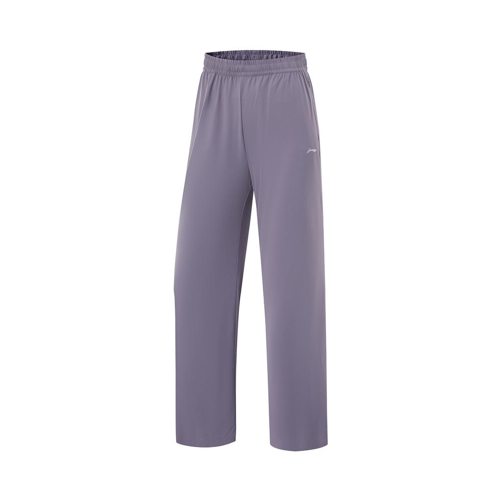 Li Ning Fitness Series Casual Ice Silk Quick Dry Cool Comfortable Versatile Knitted Sports Pants Women Bottoms Dark-Gray Purple AKYV188-3