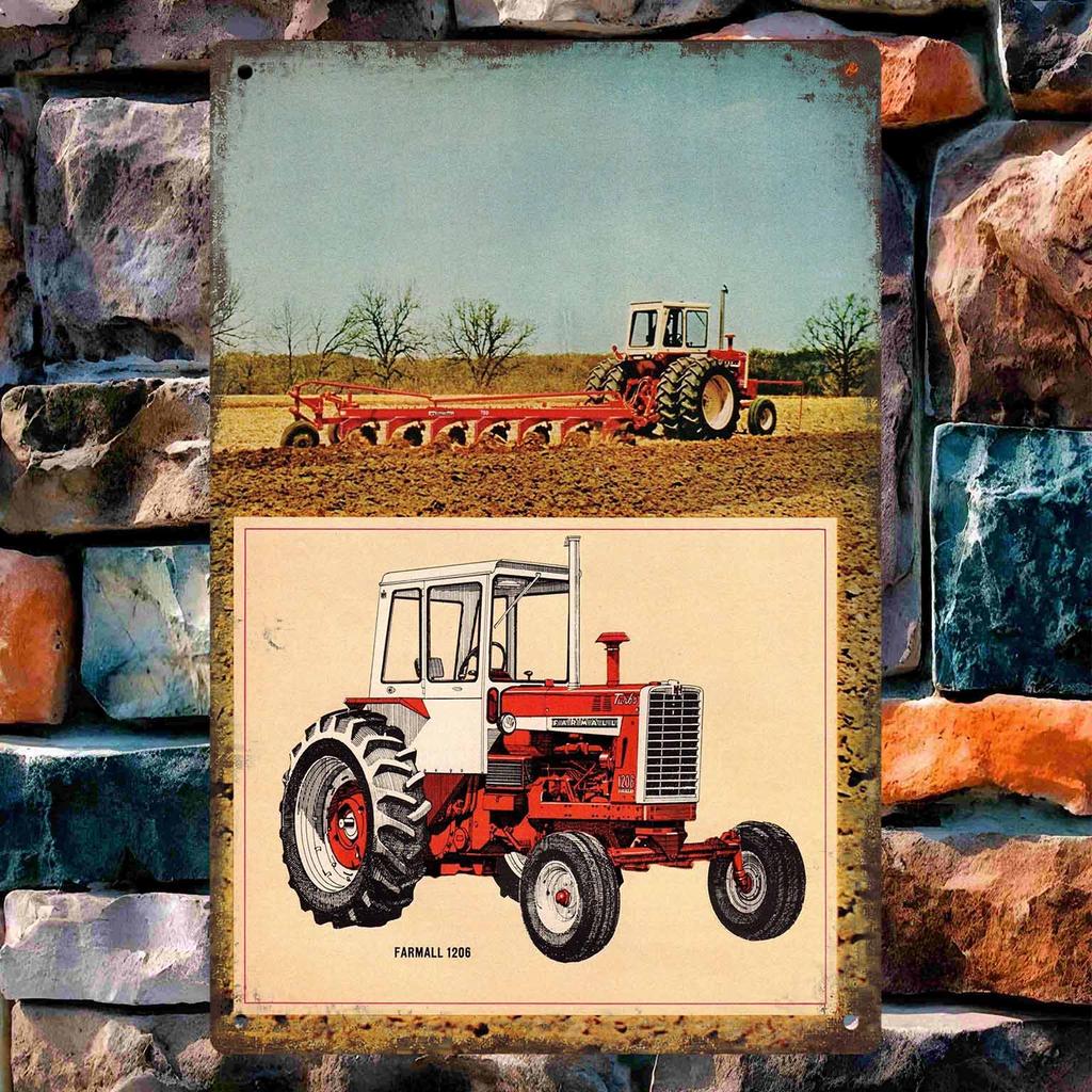 Detailed Illustration of a Vintage Red Plow Tractor Vintage Metal Wall Sign Decor Poster Frames Garage Living Room
