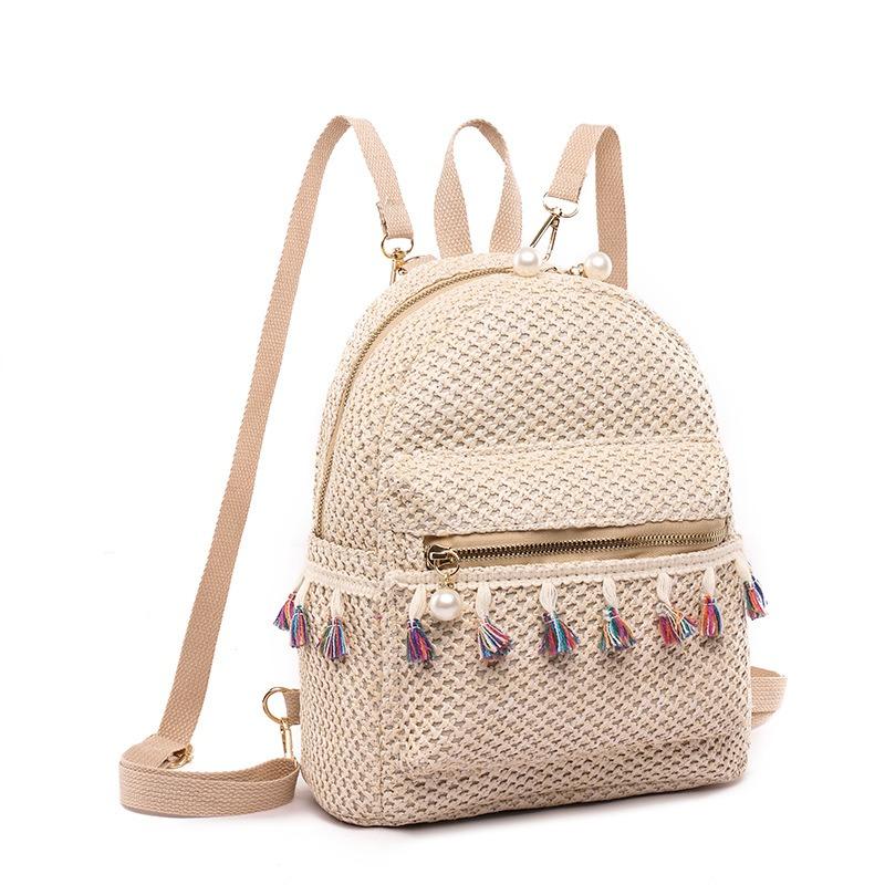Backpack Small Schoolbag Female Student Simple Small Fresh Grass Woven Backpack Simple and Versatile