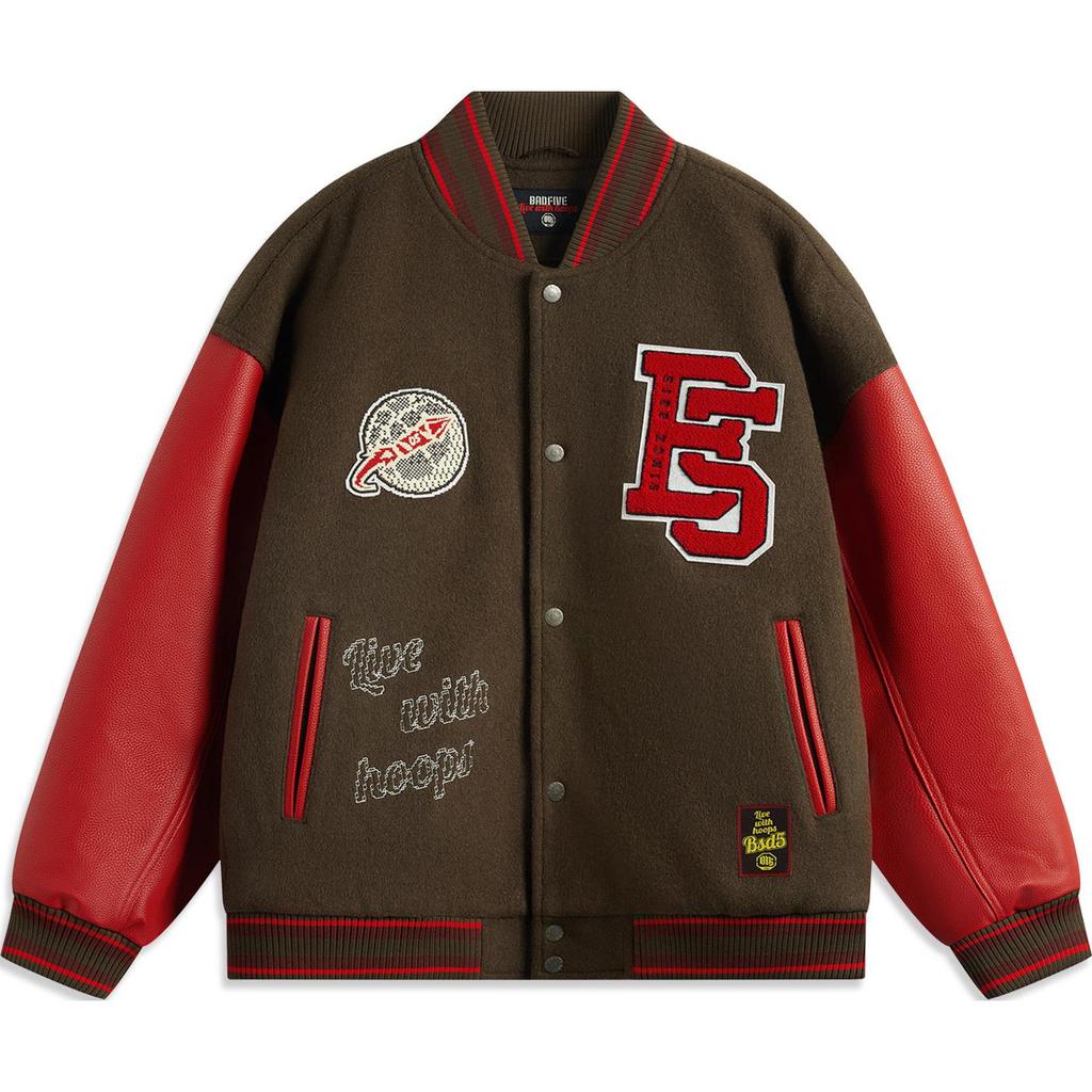 Li Ning Badfive Printed Letter Single-Breasted Comfortable Casual Baseball Jacket Men Jackets Slate-Brown Glory-Red AJMV065-1