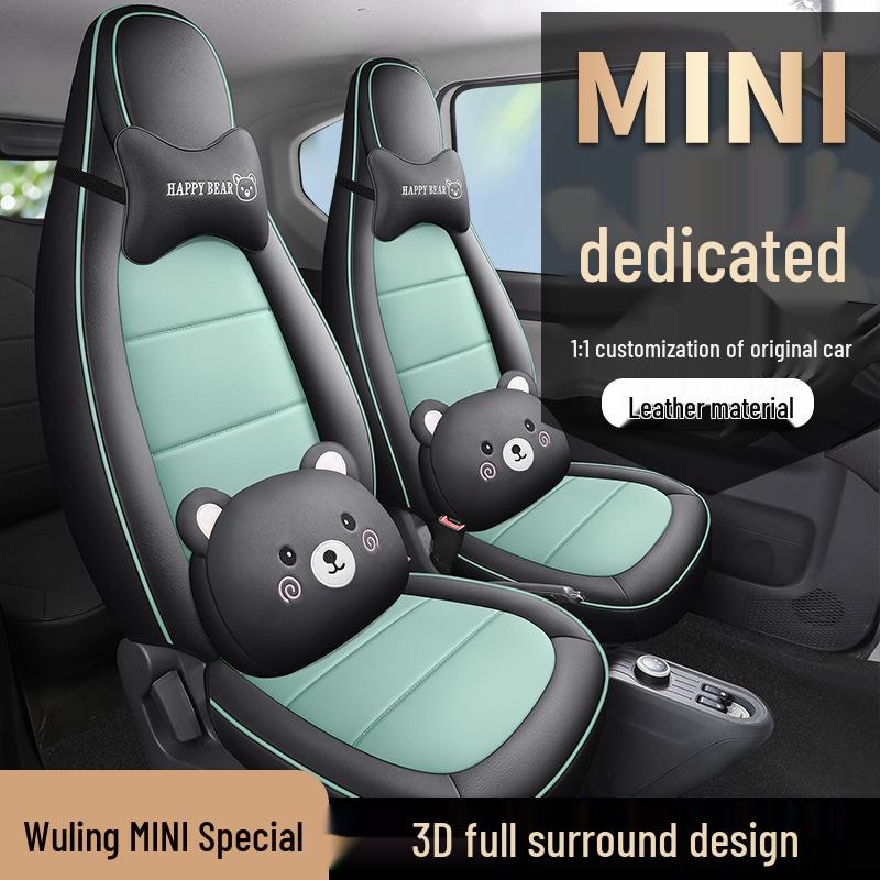 Wuling Mini Cute Cartoon Leather Car Seat Cushion Cover - Universal Fit, All Seasons