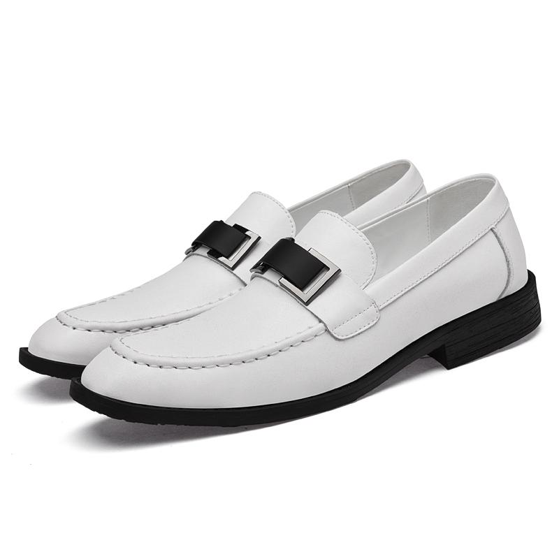 Fashion Genuine Leather Mens Casual Shoes Leisure Walk Loafers Outdoor Comfy Casual Shoes Classic Metal Buckle Business Shoes Moccasins