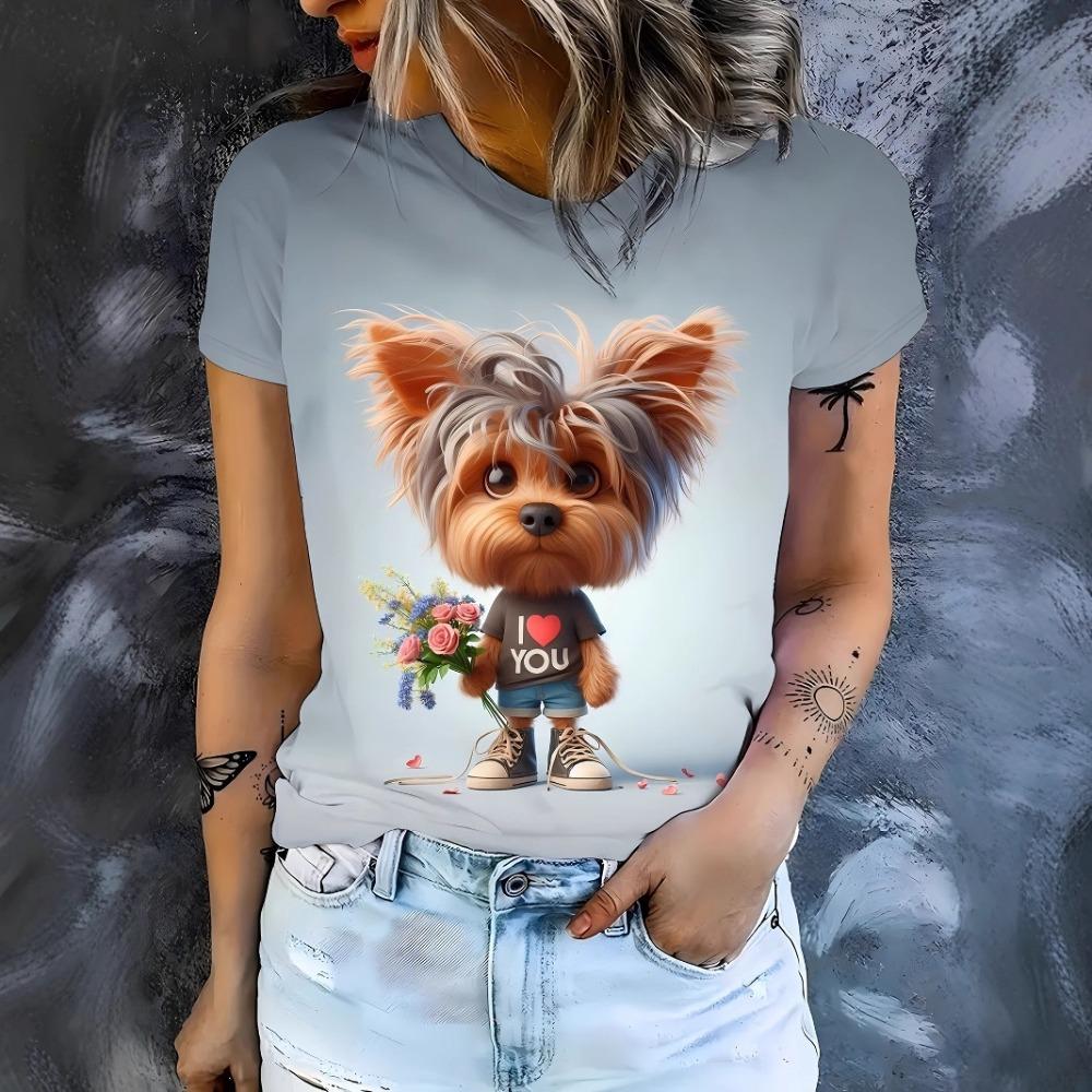 Cute Animal Pattern 3D Digital Printing Women's Trendy Round Neck Short Sleeved T-shirt