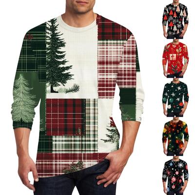 Men's Christmas Print Round Neck Three Quarter Sleeve Top T-shirt