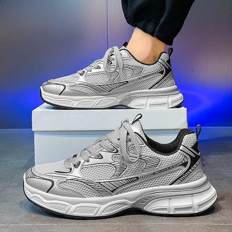 Fashion Gray Mesh Upper Sports Shoes for Men Cushioned Insole Light HikingTrekking Cheap Liquidation Jump Stylish Gym Man Casual Sneaker