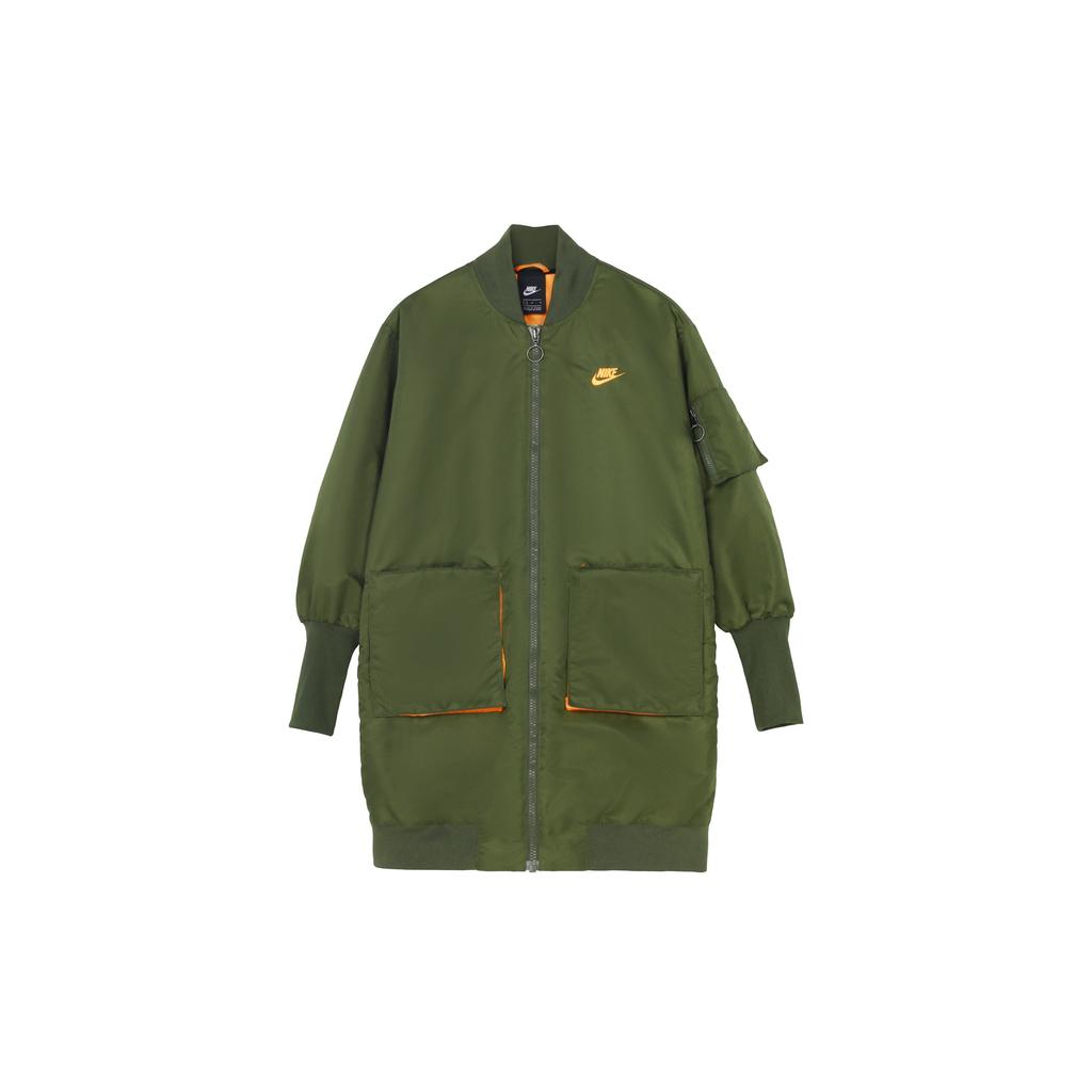 Nike Sportswear Synthetic-Fill Logo Mid-Length Warm Coat Long Sleeve Cotton Jacket Women Coats Canvas-Olive-Green CV1630-395