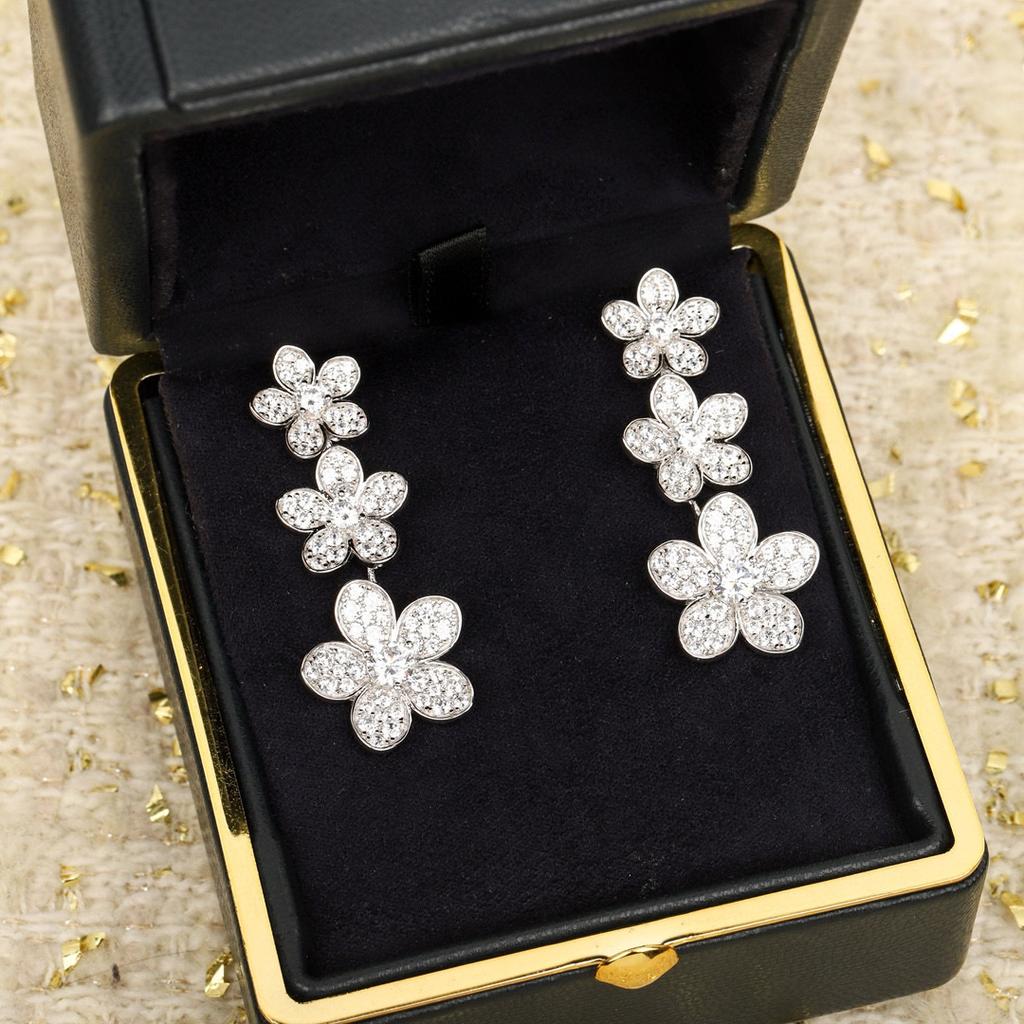 New Hot Brand Vintage 3 Flowers Earrings for Women Luxury Jewelry Fashion Designer Eardrop Pure 925 Sliver Party Stud Earrings