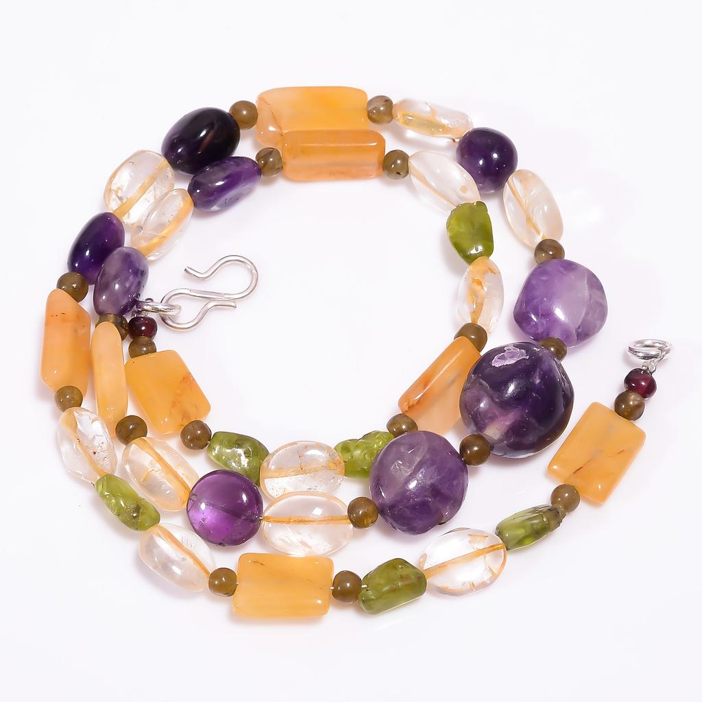Natural Amethyst Citrine Aventurine Gemstone Beads Necklace 3-15 Mm 18" UB-8121 UB-8121