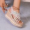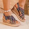 Spring and Summer New Slope Heel Platform Women's Shoes Large Size Printing Casual Platform Muffin Fish Mouth Sandals Women