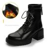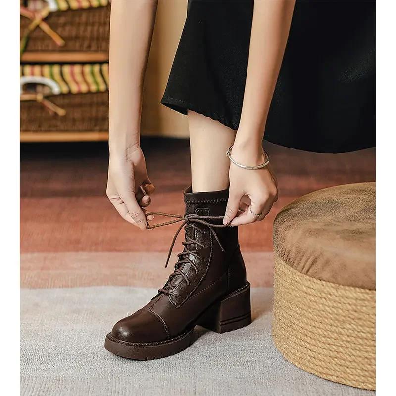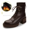 Fashion Women's Platform High Heel 2025 Autumn and Winter New Thick Heel Lace-up I British Style Short Boots Brown Single Boots