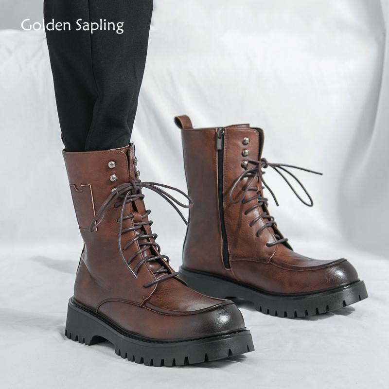 Fashion Golden Sapling Men's Work Boots Casual Platform Shoes Men Casual Footwear Leisure Flats Comfortable Tactical Shoe Fashion Boot