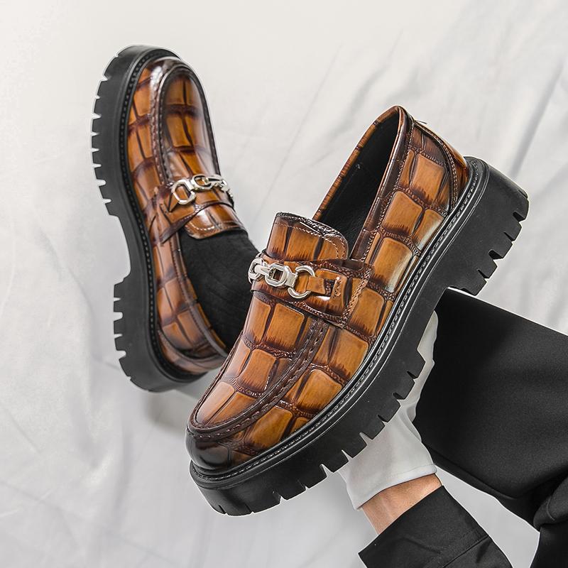 Fashion New LuxuryBrand Korean Version Thick Soled Loafers Casual High Quality Slip-on British Fashion Glossy Metal Decoration Men Shoes