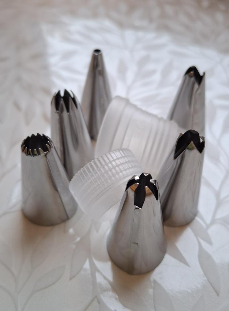 👩🍳 I received the 6 pieces of nozzles for a piping bag after two weeks delivery time very well packaged and delivered consolidated in Austria. 👩🍳 The seller's statement that this is offered as a set - piping bag and nozzles, is confusing, as a set with a piping bag also includes the bag, which is not included, therefore I awarded 4 out of 5 stars. 👩🍳 If someone only needs the nozzles, the product is recommended, however unsuitable without piping bags! Music 🎶 from Capcut pro
