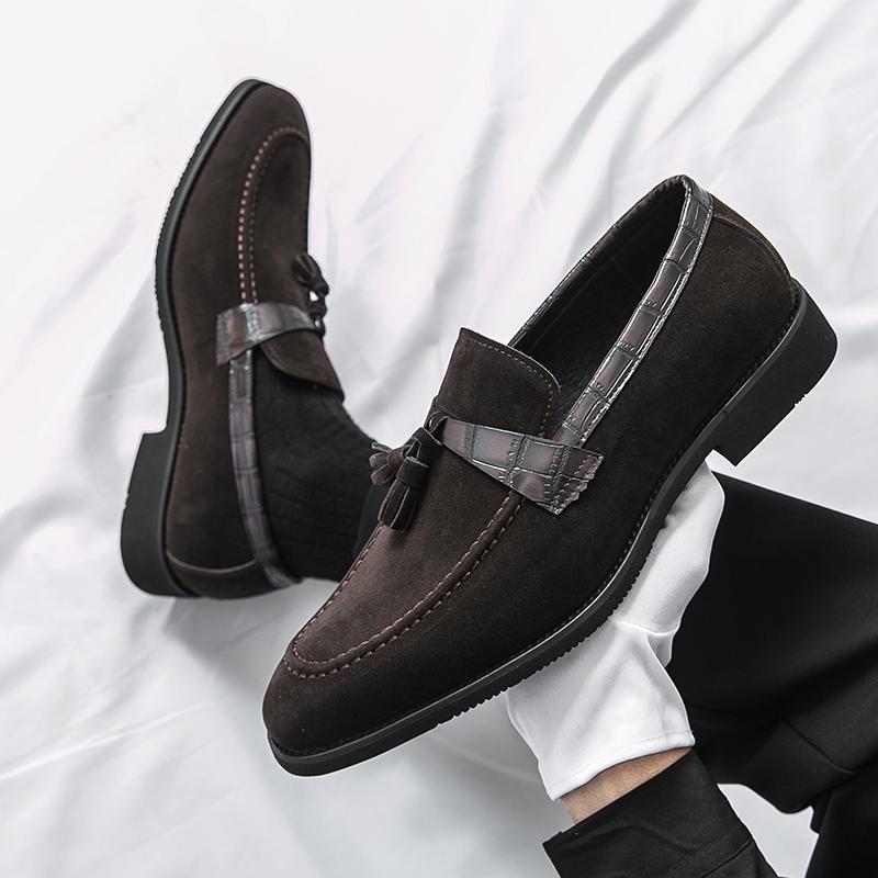 Fashion Tassels Suede Crocodile Skin Color Blocking Design Men Comfortable High Quality Leather Shoes Casual Slip On Flats Soft Loafers