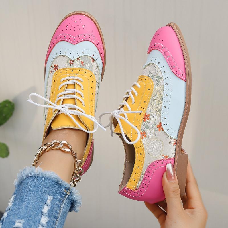 Spring and Autumn Flat-bottomed Brock Single Shoes Women's Color Matching Lace-up Round Head Casual Women's Shoes