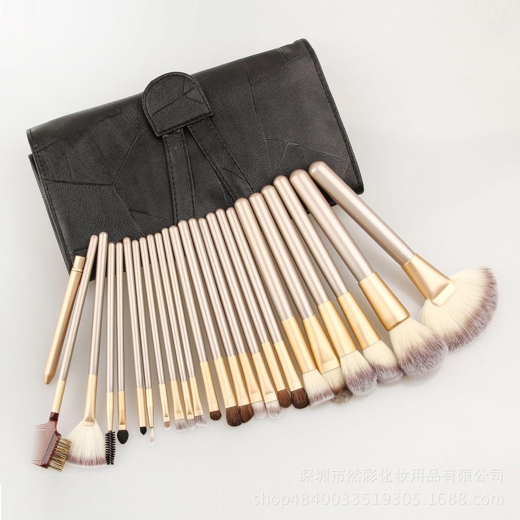 12/18/24-Piece Champagne Makeup Brush Set: Persian Wool Powder Brush, Blush Brush, Horse Hair Eyeshadow Brush