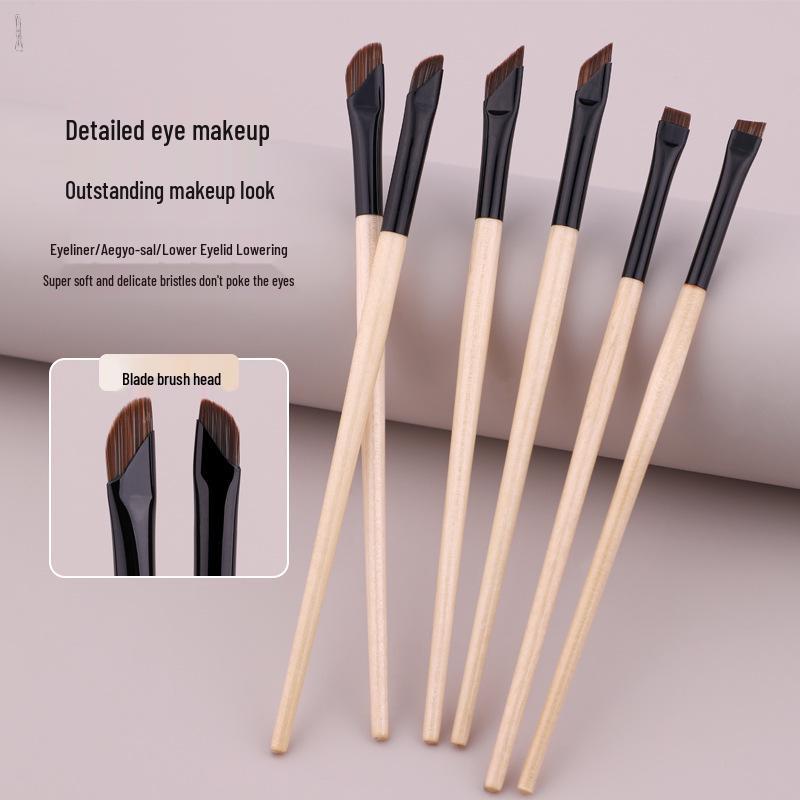 Ultra-thin Sickle Eyeliner & Flat-head Eyebrow Brush for Lower Eyelid and Under-eye Detail