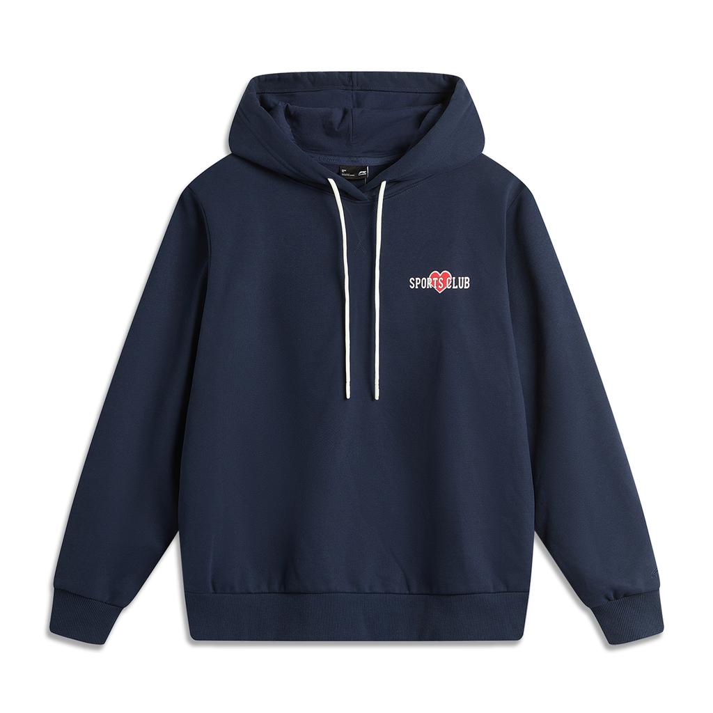 Li Ning Comfortable Back Letter Heart Print Casual Simple Versatile Hooded Loose Pullover Sweatshirt Women Sweatshirt AWDVJ46-1