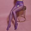Seductive Black Silk Open Crotch Seamless Stockings with Oil Sheen Finish