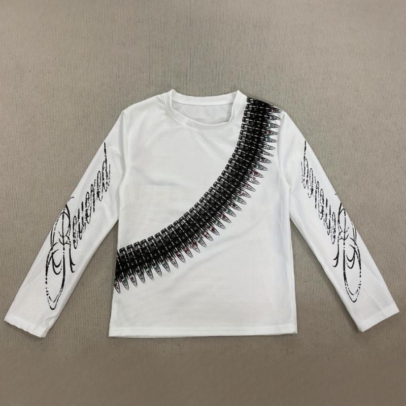European and American Style Dark Printed Round Neck Long Sleeved Retro Street Trend Pullover Top